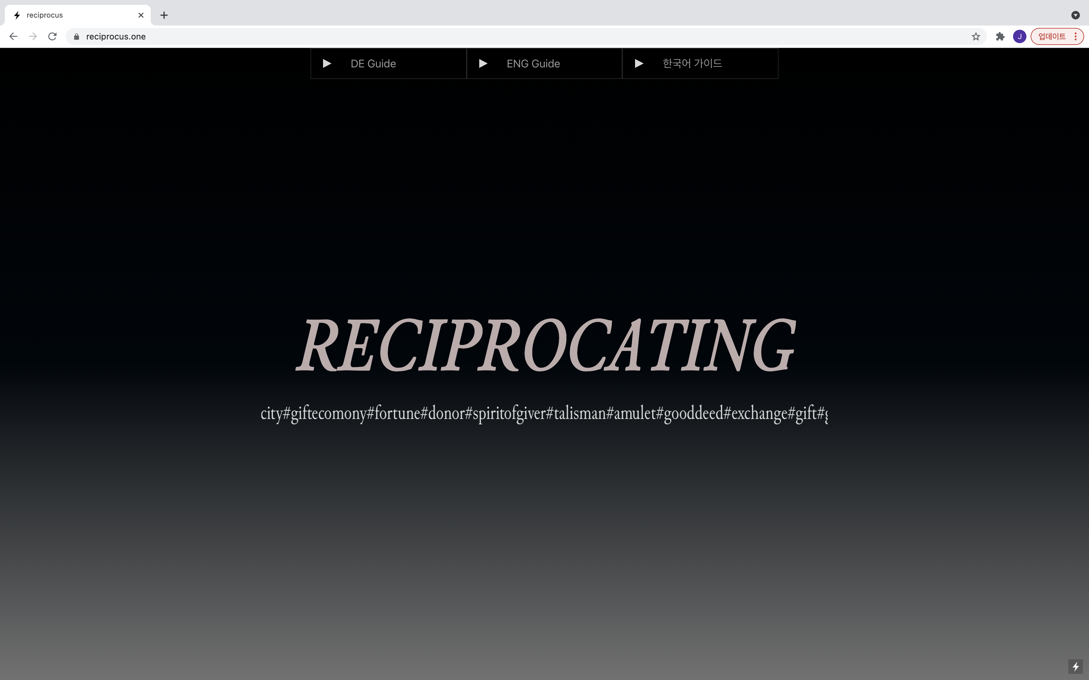 이 작업은 reciprocus.one이라는 웹사이트에 시작페이지, 설문조사, 부적컬렉션, 각 부적들의 정보 및 구매방법인 5개의 섹션으로 구성이 되어있다. 각 페이지에는 독일어, 영어, 한국어 오디오 가이드가 있어 관람객은 시각뿐만 아니라 청각으로도 이 작업을 감상할 수 있다. 또한 오디오 가이드를 통해 작가가 어떠한 언어를 기반으로 작업을 하는지 엿볼 수 있다.